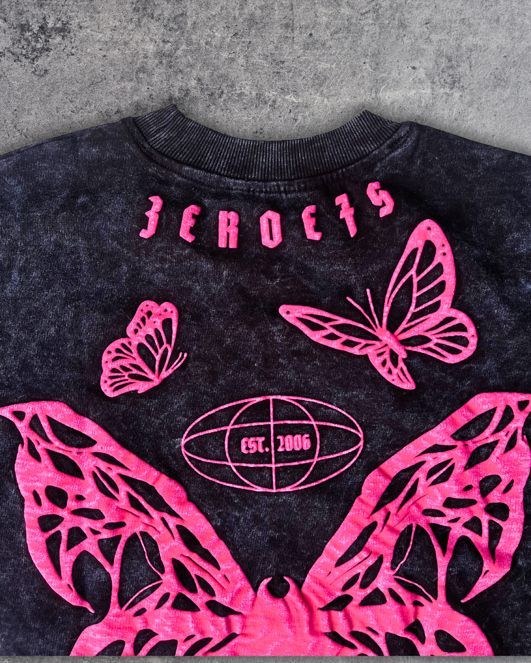 • Design: Unisex, relaxed crew neck with a distinctive acid wash finish and striking puff-print detailing.